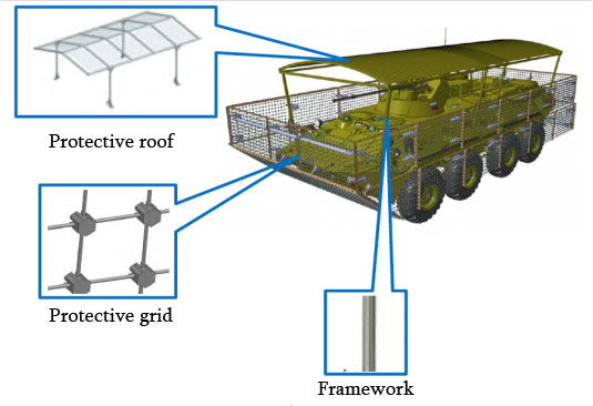 Equipping the БТР-82A armored personnel carrier with a protective screen and grids: