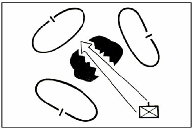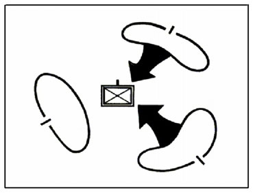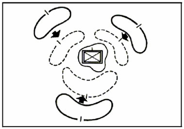 Այս մեթոդով շրջապատումն իրականացնող մեկ կամ մի քանի ստորաբաժանումներ մնում են տեղում, իսկ մնացածը հակառակորդի ուժերը «քշում» են տեղում մնացած ուժերի ուղղությամբ (Նկ. 2):